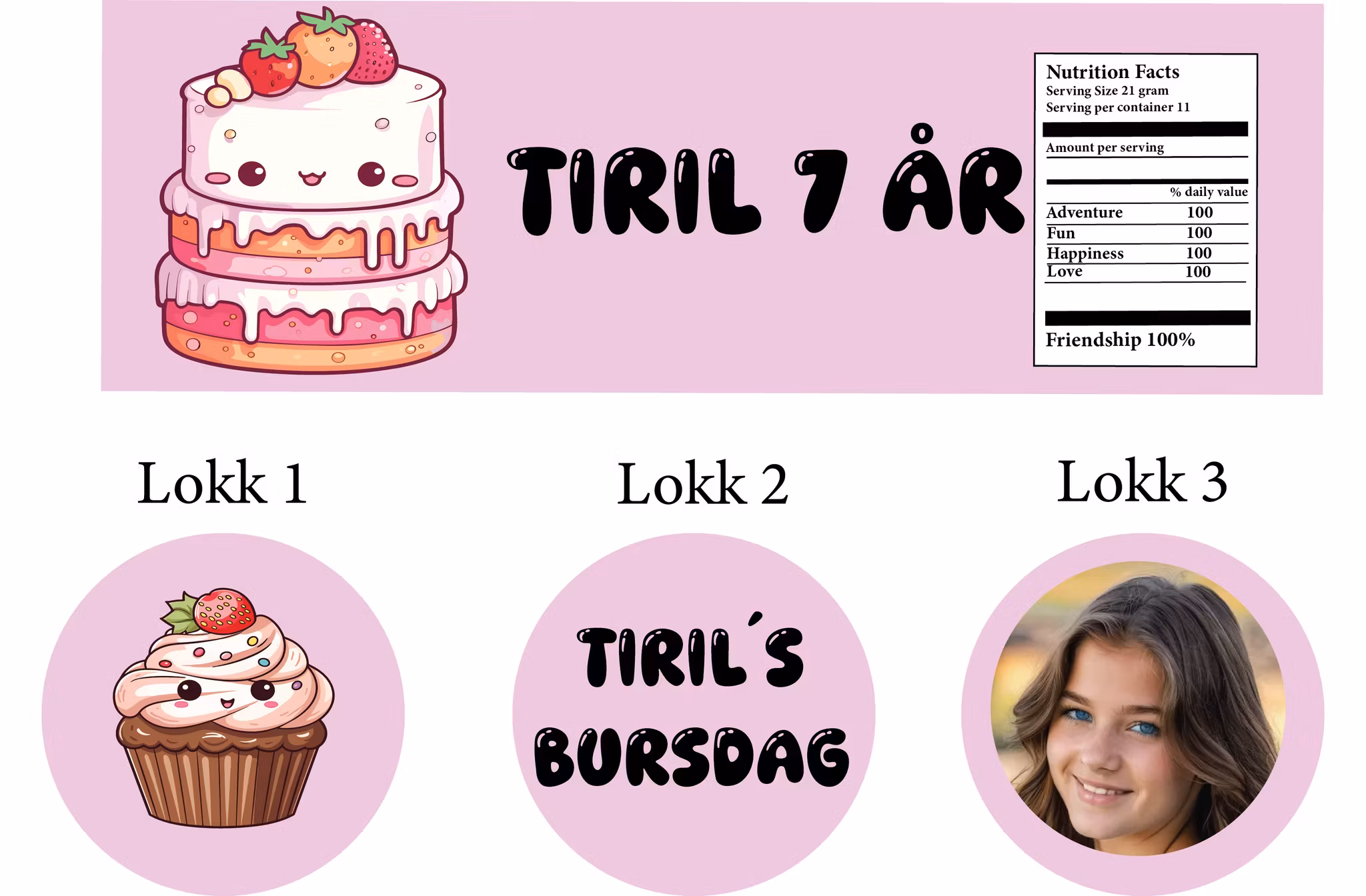 3. Skriv teksten du ønsker på etiketten, feks "Sanna 4 år".