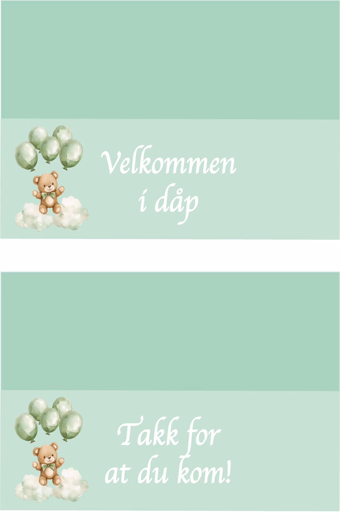 Med disse kan du pynte opp dåpen med personlige etiketter. Vi har laget etiketter til sukkertøyposer som gjør borddekkingen ekstra fin.